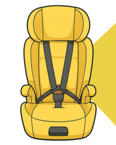 Beschreibung: Ein einfacher Sitz ohne Rückenlehne, der das Kind auf die richtige Gurtposition anhebt. Der Fahrzeuggurt verläuft dadurch korrekt über Schulter und Becken.